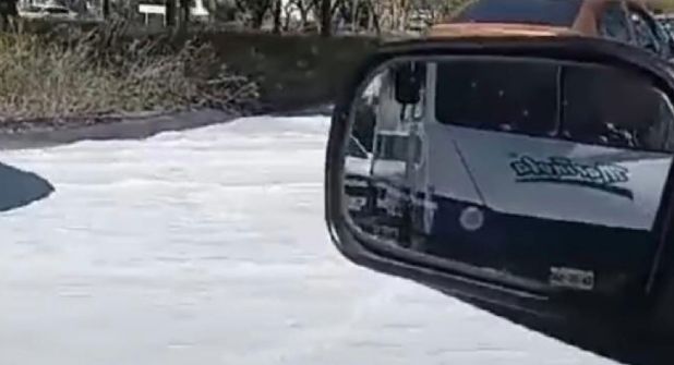 Los automovilistas registraron el accidente a través de sus teléfonos celulares, se observó que el líquido se regó por lo avenida, circulando en un gran charco de líquido blanquecino.
