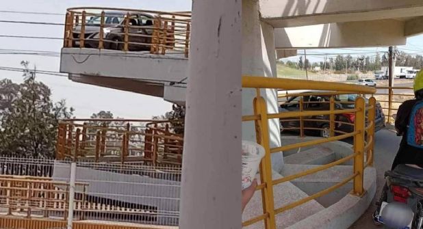 Irapuato.- Una imagen más se añade a las del álbum imaginario de la sociedad mexicana de eventos surrealistas que pareciera que solo ocurren en México. En el municipio de Irapuato, en el estado de Guanajuato un hombre, con todo y auto, se quedó atorado en un puente peatonal.