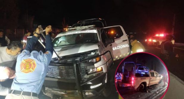Apaseo el Grande.- Agentes de la Guardia Nacional sufrieron un accidente en la carretera Panamericana tramo Celaya-Querétaro, a la altura de Apaseo el Grande, a bordo de una unidad oficial presuntamente mientras ingerían bebidas alcohólicas.