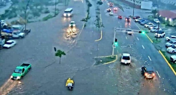 Pasadas las 18:00 horas Protección Civil de León informó sobre cierre de la circulación a la vialidad baja del Malecón del Río. Después de las 19:00 horas la basura tapó la coladera en tramo vehicular del puente deprimido en el bulevar Hermanos Aldama, entre Timoteo Lozano.