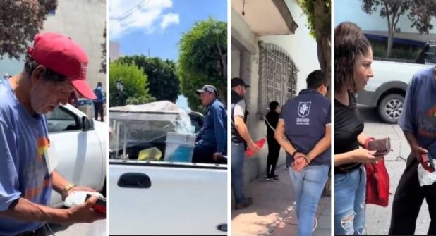 Quien grabó el video fue el primero es sacarse un billete de la bolsa y entregárselo al señor, como una forma de ayuda para poder recuperar en el Dirección de Mercados lo que le decomisaron.