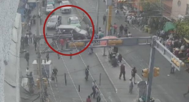 Ocurrió minutos antes de las 14:00 horas sobre la avenida Miguel Alemán esquina con la calle Leona Vicario en la colonia Obrera. Una cámara de seguridad que apuntaba a la escena del accidente registró todo.