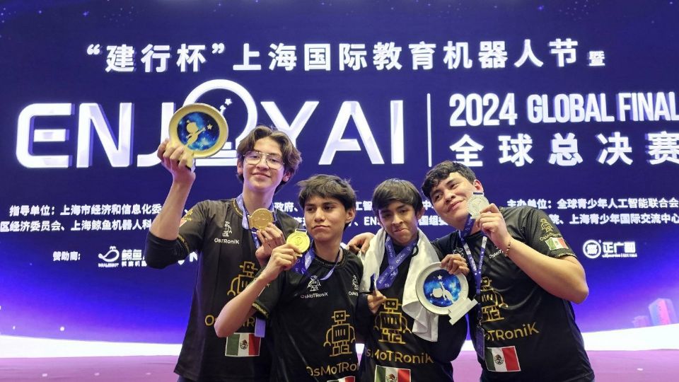 León, Guanajuato.- Hace unas horas, dos equipos guanajuatenses obtuvieron el primer y segundo lugar de entre los 34 países que participaron en el torneo de robótica Internacional Enjoy AI 2024 en Shanghái, China. Los adolescentes, originarios de León, Guanajuato Capital y Valle de Santiago ganaron en la categoría de Closing Ceremony High School.