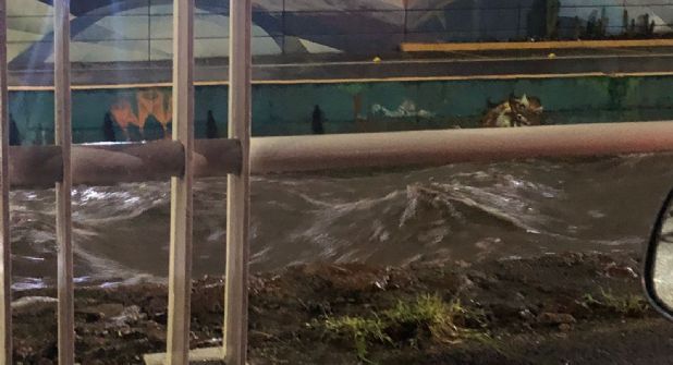 León-. Los pronósticos ya lo habían dicho: iban a caer fuertes aguaceros, y eso precisamente pasó poco después de las 7 de la tarde, la lluvia se precipitó sobre la ciudad, inundando calles, avenidas y bulevares, y el Malecón del Río el afluyente llevó una corriente como si de un rápido se tratara.