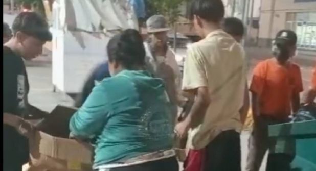 En el video al que tuvo acceso La Silla Rota, se puede ver a todas las personas que se encuentran reunidas buscando entre las bolsas del contenedor de basura, incluso juntando cajas tiradas en el mismo basurero para guardar la pizza que logran recolectar.