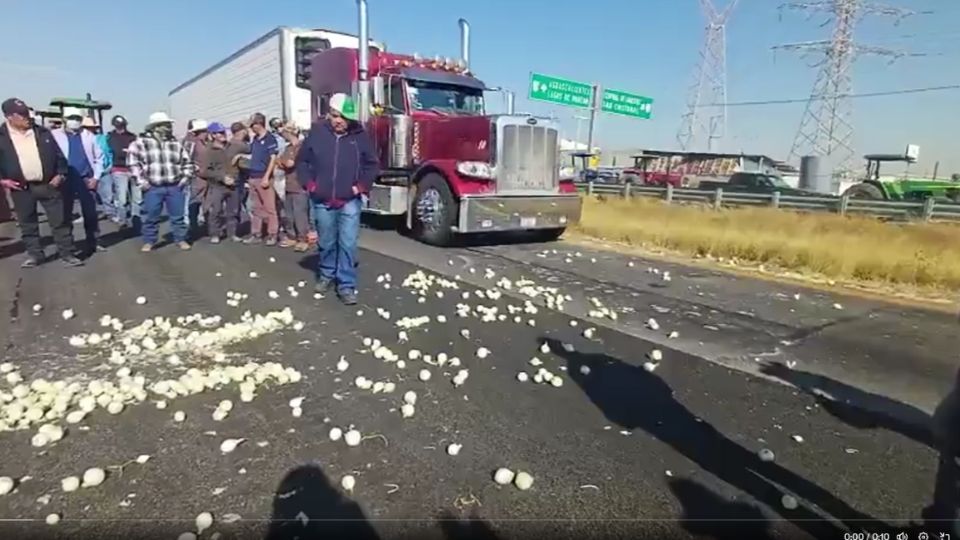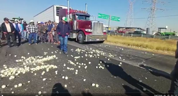 León. - Más de 150 productores agrícolas de distintas comunidades rurales de León bloquearon este lunes la Autopista León–Aguascalientes, así como algunas vialidades del municipio, y lanzaron toneladas de cebolla sobre el asfalto, en protesta por los bajos precios que reciben por sus cosechas.