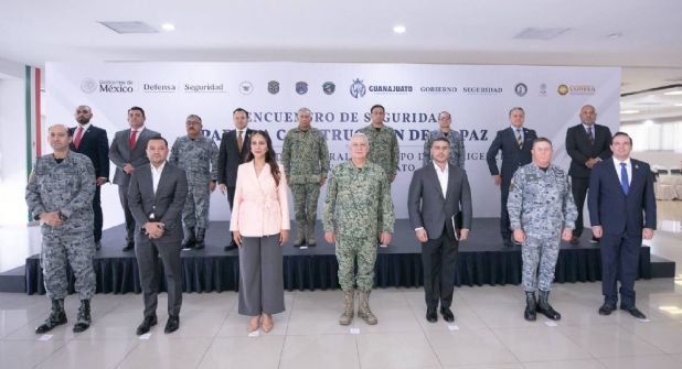 En el Encuentro de Seguridad para la Construcción de la Paz, la Gobernadora también se reunió con Ricardo Trevilla Trejo, Secretario de la Defensa Nacional, además del gabinete de seguridad estatal de Guanajuato y autoridades federales de la Guardia Nacional que operan en apoyo de la pacificación de Guanajuato.