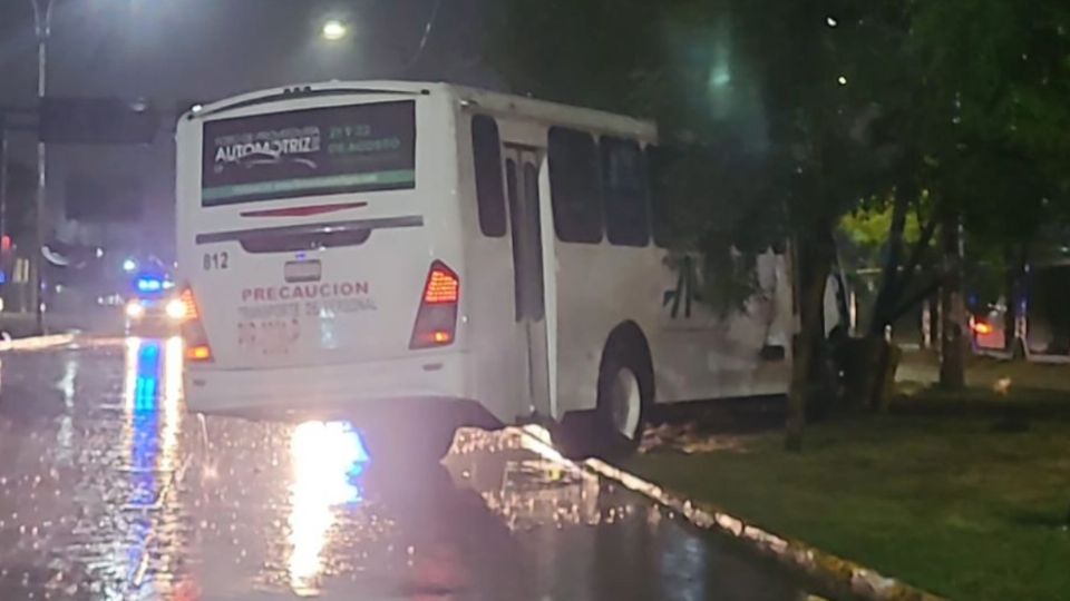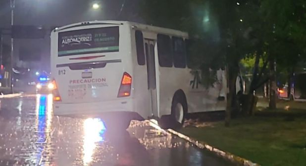 León, Guanajuato.- Caos en las calles de León. Un camión de personal chocó contra una antena la noche de este miércoles luego de la fuerte lluvia de este miércoles.