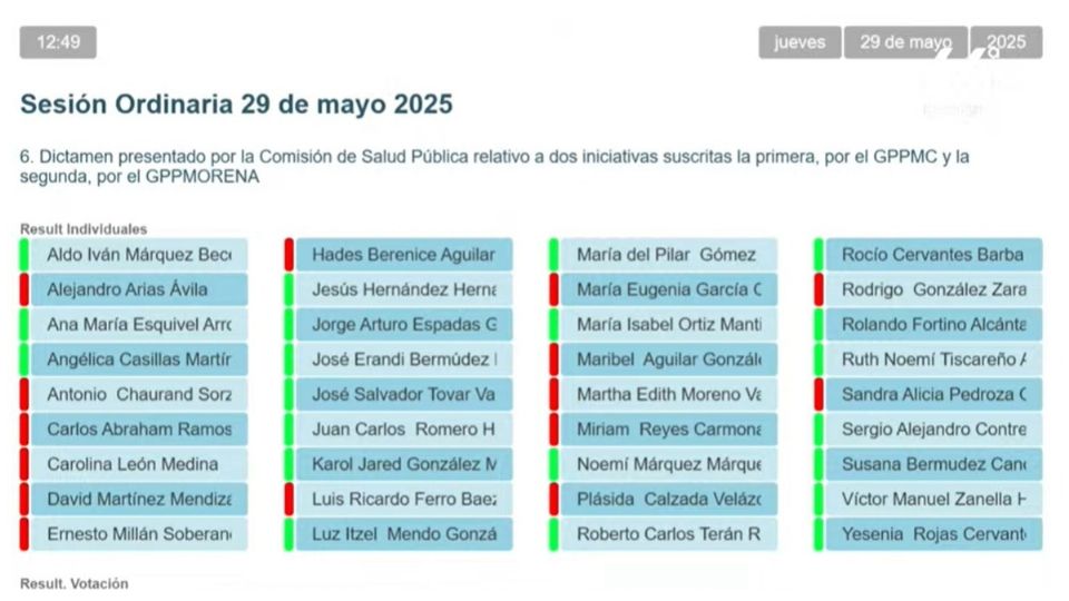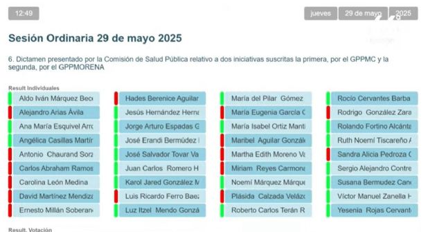 Votación 1.- Dictamen de la Comisión de Gobernación y Puntos Constitucionales. ¿De qué trata? De eliminar de la Constitución del Estado el párrafo que dice que “persona es todo ser humano desde su concepción, hasta su muerte natural. Ambos supuestos ya han sido declarados inconstitucionales por la Suprema Corte de Justicia de la Nación, porque niegan el derecho a decidir de las mujeres y el derecho a la voluntad anticipada y cuidados paliativos en caso de muerte. Se trata de que se tenga decisión del propio cuerpo con algún grado de libertad y sin condena.