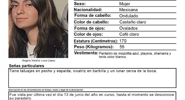 “Se solicita su ayuda para encontrar a mi hermana Ángela Natalia Loza López. No sabemos de ella desde el domingo en la noche” publicó su hermana en Facebook.