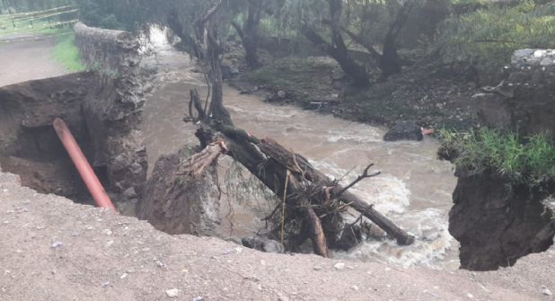 Guanajuato.- Este lunes 14 de julio un enorme socavón se abrió en el camino antiguo a Marfil, en Guanajuato Capital, luego de que las intensas lluvias desboradaran las presas de La Olla y La Esperanza.