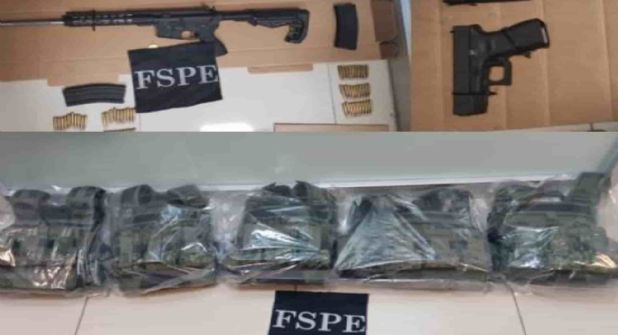Inmediatamente, los elementos estatales activan los protocolos de actuación se les pide detener su marcha para realizar una inspección de prevención. De dicho vehículo, descendieron cinco sujetos que de manera preventiva son asegurados y se procedió entonces también a una revisión del vehículo, localizando en su interior armas largas, diversos cargadores de arma de fuego y municiones.