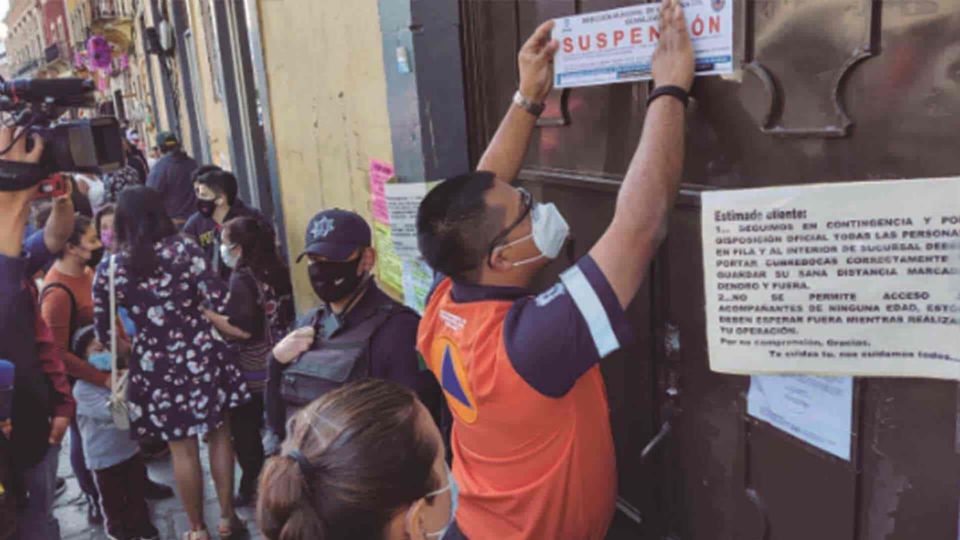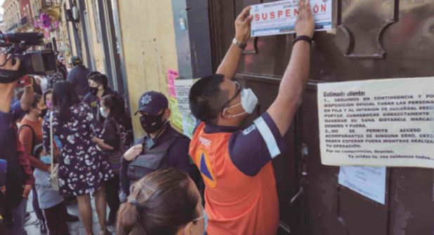 El "escuadrón anti-Covid" de la capital, un grupo de corporaciones encabezadas por la Presidencia Municipal de Guanajuato, clausuró las dos sucursales de Elektra en el Centro Histórico de la ciudad tras no acatar las medidas sanitarias, generando aglomeraciones causando riesgos a la salud.