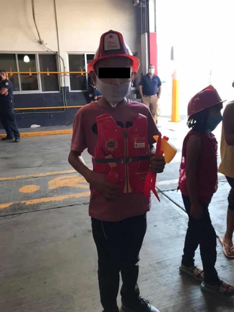 Un vehículo proveniente de la dirección de Protección Civil y Bomberos llegó hasta el domicilio de Bryan. Momentos después se activó la sirena y el claxon de la unidad, acción que emocionó al niño.