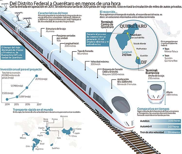 “El tren que va de México a Querétaro y de Querétaro a León, pasando por las zonas del bajío. Es uno que representa muchísimas ventajas y muchas posibilidades, entonces es muy probable que en el transcurso de este mismo año lancemos una convocatoria para terminar el tren Toluca-México y para la construcción de México-Querétaro, Querétaro-León”, explicó.