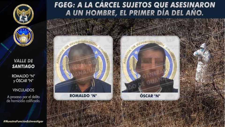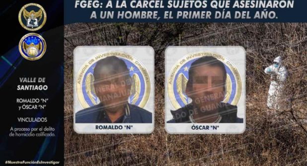 Valle de Santiago.- La madrugada del primero de enero, en las cercanías de una comunidad de Valle de Santiago, fue encontrado un hombre sin vida, a quien momentos antes dos sujetos habían privado de su libertad al exterior de su domicilio; ambos involucrados fueron capturados y se encuentran ya vinculados a proceso.