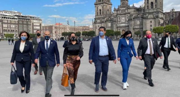 Celaya.- Esta mañana se reunieron en Palacio Nacional con el presidente López Obrador, el gobernador Diego Sinhue, el presidente de Celaya Javier Mendoza Márquez, las presidentas de León Alejandra Gutiérrez y la de Irapuato Lorena Alfaro, los alcaldes Silao Carlos García y Salamanca César Prieto y el secretario de Finanzas Héctor Salgado.
