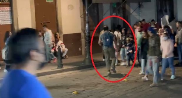Y ni extrañeza causa. Se atraviesa al paso de turistas y aparentemente lugareños que ni se inmutan ante el zigzagueante individuo, de tantos que deambulan por estas fechas en la ciudad.