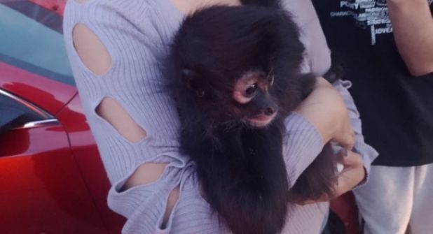 A través de un reporte al 911 las autoridades tuvieron conocimiento sobre la presencia de este primate en la zona, por lo cual se trasladaron y les fue fácil capturarlo debido a que al parecer está domesticado.
