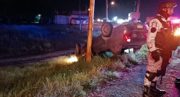 San Luis de la Paz.- Un vehículo conducido a exceso de velocidad terminó volcado en una curva del Entronque de acceso a San Luis de la Paz. El conductor, de 33 años de edad, resultó lesionado.