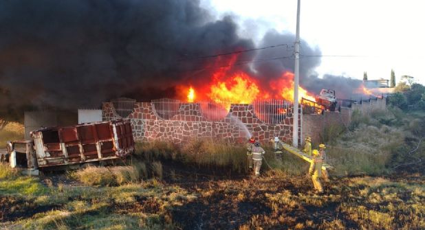 Michoacán.- Dos bomberos del departamento de Bomberos Voluntarios de Acámbaro salieron lesionados al recibir un golpe de calor mientras combatían un incendio en Michoacán. Los convocaron para apagar las llamas en un corralón de vehículossobre la carretera Maravatio - Morelia