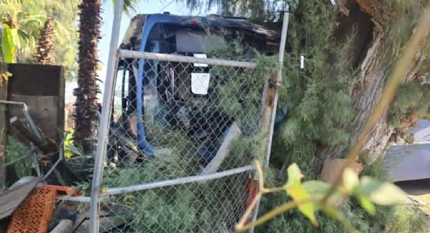 El percance se suscitó a la altura de la comunidad La Aldea. La unidad SI-0114 transitaba en dirección a Silao y repentinamente salió del camino, tumbó la malla que delimita una propiedad y se estrelló contra la palmera.