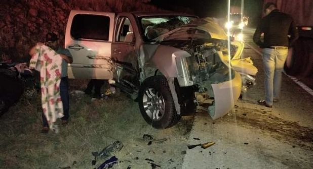 Sin embargo, cuando les faltaba poco para llegar a Fresnillo sufrieron el imprevisto. No se ha determinado cuál de los dos vehículos fue el que invadió carril, pero la Suburban color plata se estrelló de frente contra un tractocamión Kenworth que transportaba una caja refrigerada.