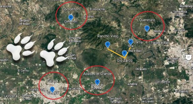 Apaseo el Grande.- ¿Dónde puede estar el felino que devora ganado y aterroriza a la gente de Guanajuato? Lo están buscando en un radio de 60km que llega hasta Querétaro. Incluso los municipios más urbanizados como Celaya lo rastran en su territorio.