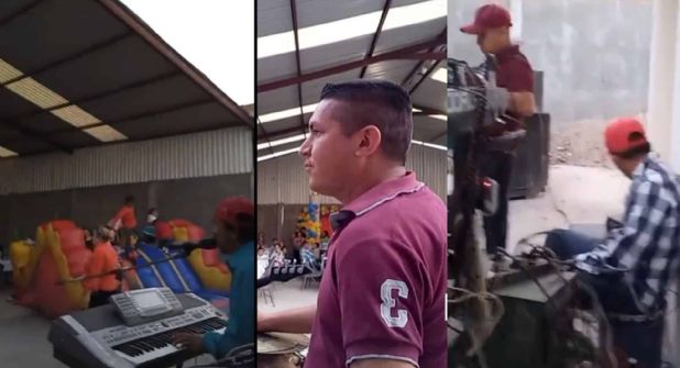 Este martes “Los Chuparrecio” filmaron en vivo su tocada en una fiesta infantil de Rancho Seco, cerca de las 3 de la tarde. En el video se ven seis integrantes del grupo: unos tocan la batería, otros piano, acordeón, tambora, bajo y tambores.