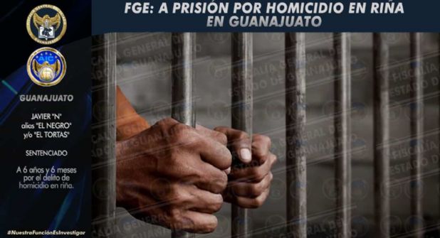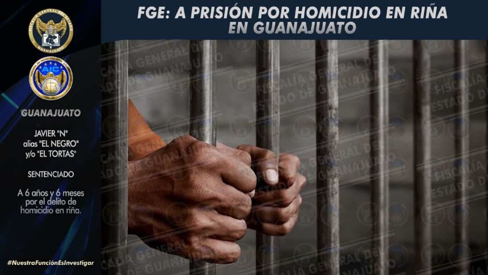 Guanajuato.- Javier "N", alias "El Negro" y/o "El Tortas", durante un audiencia admitió su responsabilidad en la muerte de su amigo Luis Ernesto "N" y fue sentenciado a pasar en prisión seis años y seis meses, para purgar su delito de homicidio en riña.