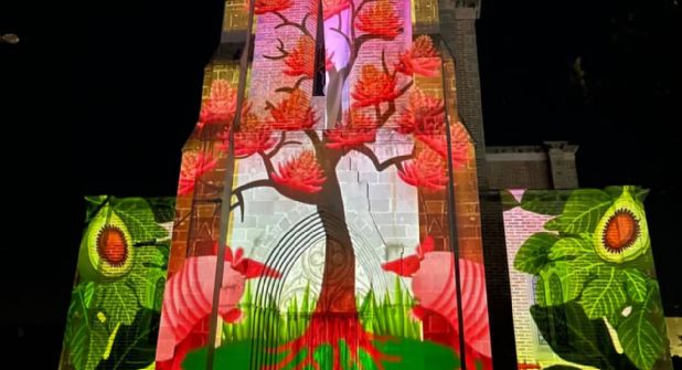 El video mapping proyectado en la fachada del Templo de Jalpa de Cánovas, es el relato simbólico del proceso de creación, desarrollo y vida de esta comunidad declarada Pueblo Mágico que comparte a todos su historia.