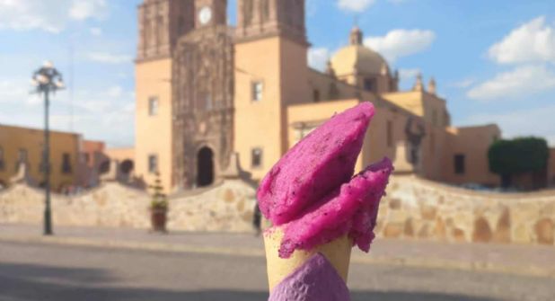 En el Centro Histórico la gente tiene las manos ocupadas, una la usan para cargar recuerditos o para tomar de la mano a sus parejas o niños, y la otra es para sostener su cono. Es una parada obligada en este municipio pasar a probar las famosas nieves de