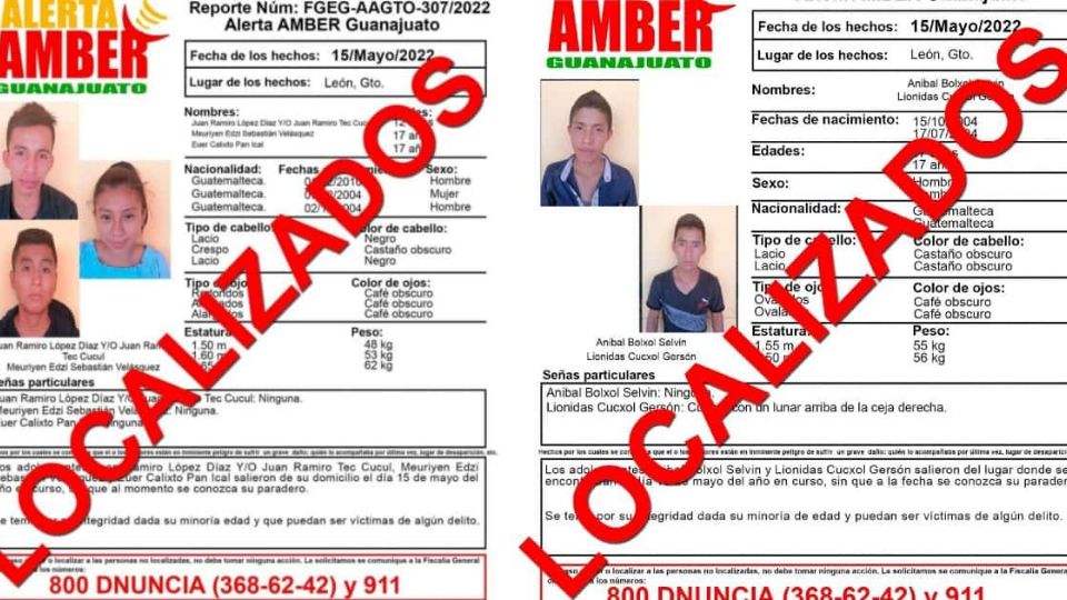 León.- Desactivó la Fiscalía General del Estado de Guanajuato (FGEG) las alertas Amber de los niños guatemaltecos que desaparecidos en León.