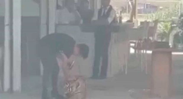 El tigre fue captado en un video que circuló la tarde de este viernes. El felino aparece acostado dentro del restaurante techado con láminas, un hombre intenta tocarlo pero este se mueve. El animal de gran tamaño es observado por los trabajadores y clientes del restaurante.