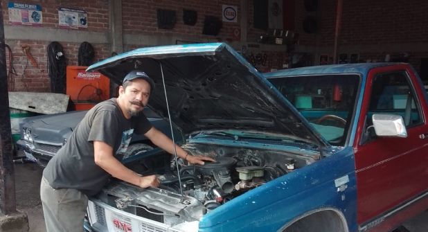 Lázaro atiende en su taller “Automotriz Samaro”, de la calle Rodolfo Gaona 103, en la colonia Plaza de Toros, en León.
