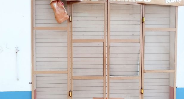 Las dos puertas del frente están selladas, aunque de cualquier forma esas no se abrían, sino que el acceso a clientes y trabajadores era por la parte trasera, una pequeña puerta de lámina que también fue clausurada.