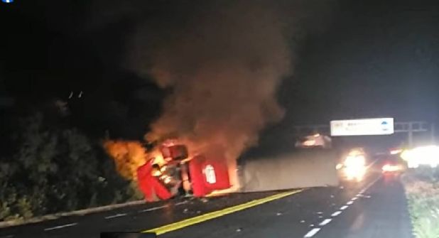 Eran las 5:00 de la mañana, para entonces una fila kilométrica de autos que pasaba por la carretera ya estaba totalmente detenida. Conductores y pasajeros vieron el momento en el que una llama comenzó a consumir parte del tráiler hasta convertirse en una columna de fuego.