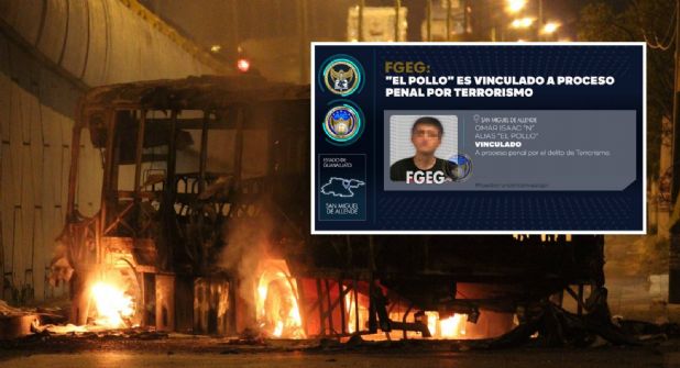 San Miguel de Allende.- La Fiscalía de Guanajuato dio a conocer hoy que Omar Issac, apodado “El Pollo”, fue detenido y vinculado a proceso por el delito de terrorismo en San Miguel de Allende.