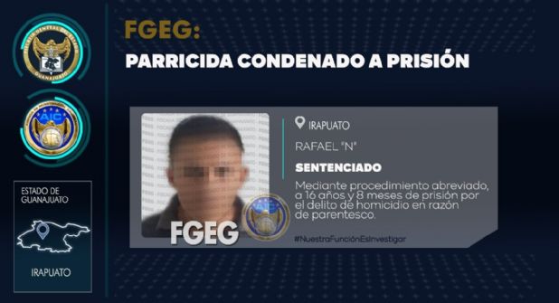 El juez resolvió dictar sentencia condenatoria de 16 años con 8 meses de prisión, al encontrarlo culpable del delito de homicidio en razón de parentesco y le impuso el pago de una multa, la reparación del daño por los gastos funerarios y la indemnización en favor de las víctimas indirectas, la cual se dio por cumplida.