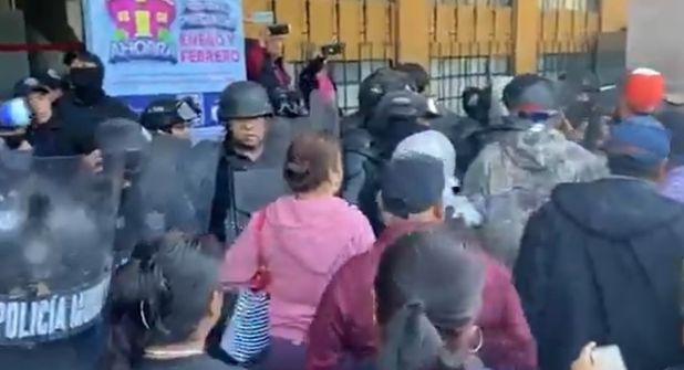 Mientras al interior de la Presidencia el representante de vecinos en la comunidad, José Alberto Acosta, se reunía con el Secretario del Ayuntamiento, Jorge Gámez, y el secretario particular del presidente, Ramón Medellín, afuera los manifestantes se hicieron de empujones con la Policía Municipal que resguardaban el edificio con vallas metálicas.