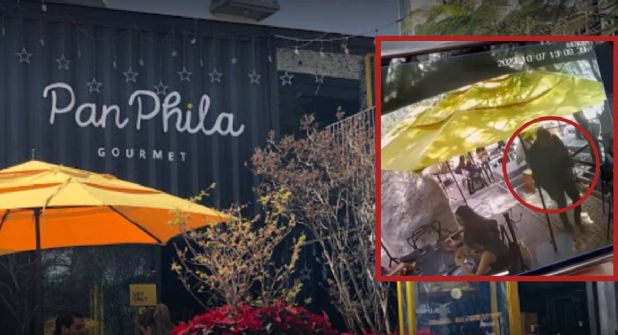 En el video que grabaron las cámaras de Panphila se observa un hombre vestido de negro y con una gorra caminar de forma casual entre las mesas, “es él”, dice una persona sosteniendo el celular donde aparece el video.