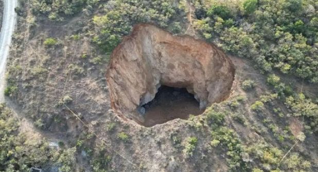 Guanajuato, Guanajuato-. Es un enorme y profundo hoyo de 30 metros de hondo, se abrió cerca de Mineral de la Luz a la falda del cerro de Cristo Rey, tiene 200 metros de diámetro. Los pobladores temen que la situación pueda empeorar y que el socavón pueda crecer más. Alejandro Navarro ya señaló a los presuntos culpables.