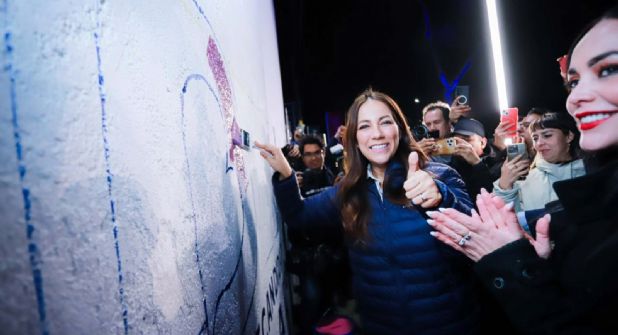 Acompañada de militantes y simpatizantes, desde el primer minuto de este sábado 25 de noviembre, la precandidata llegó entre porras, batucada y gritos de apoyo para tomar brocha y pintura.