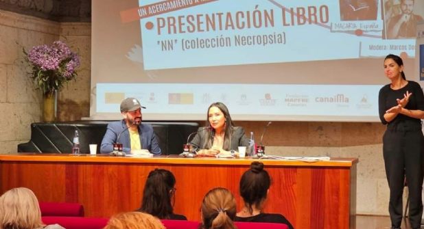 La escritora Macaria España estuvo acompañada en la mesa por el politólogo y escritor Marcos Dosantos, con quien también se reflexionó sobre la postura política que deben tener los autores en sus obras. La escritora fue recibida por el público español durante su intervención, en la que presentó su nueva novela N.N. editada por la Benemérita Universidad Autónoma de Puebla, dentro de la colección Necropsia.