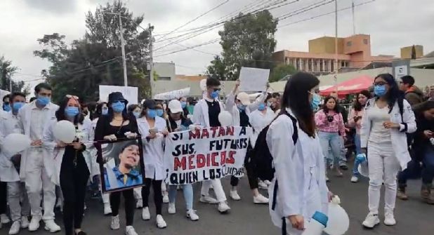 “Si matan a sus futuros médicos, ¿quién los cuidará?”, “estudio para salvar vidas, no para que me la quiten”, decían algunas de las cartulinas que portaban en el contingente.