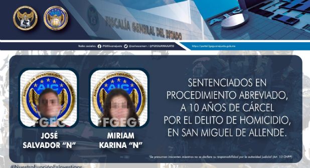 Luego de ser vinculados a proceso, Mirian Karina y José Salvador aceptaron los cargos imputados por el Ministerio Público y se declararon culpables, por lo que fueron sentenciados en procedimiento abreviado, a diez años de prisión.