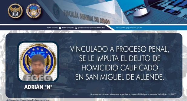Elementos de la AIC cumplimentaron el mandato judicial en contra de Adrián por el delito de homicidio calificado, delito por el que fue vinculado a proceso penal, mientras recibe sentencia.
