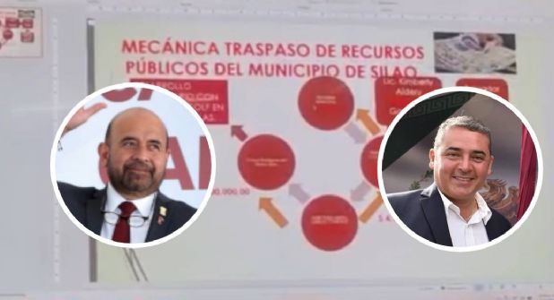 “Después esta empresa que es lo que hace prácticamente en cuanto le cae el recurso del municipio, lo convierte en dólares y lo pasa a la siguiente empresa. Manda el dinero al extranjero. Lo convierten en 198,000 dólares”, explicó Rogelio Santoyo apoyado por una presentación denominada “Mecánica de traspaso de recursos públicos del municipio de Silao”.