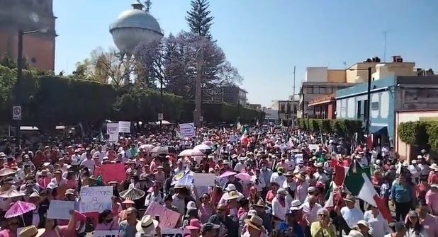Pasaron por la calle Ignacio Allende, siguieron por el Jardín Principal, frente a la Presidencia Municipal, para dirigirse a la Calzada Independencia, donde se hizo un mitin que duró no más de 20 minutos, donde no hubo oradores oficiales, sólo algunos improvisados que tomaron el micrófono para pedir la unión para defender la democracia, la invitación a votar el próximo año y a defender la libertad y al INE
