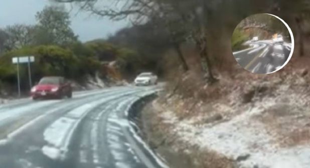 Poco antes de las 4 de tarde, el alcalde de Guanajuato Alejandro Navarro compartió en su cuenta de redes sociales un video en el que se observa una alfombra de granizo sobre la carretera, en la Sierra de Santa Rosa.